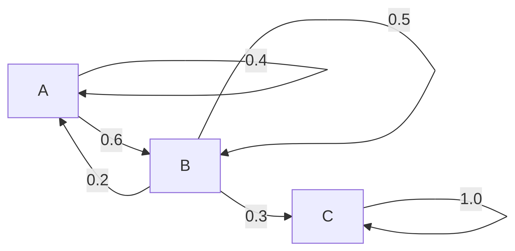 # define a stochastic matrix (lines sum to 1)